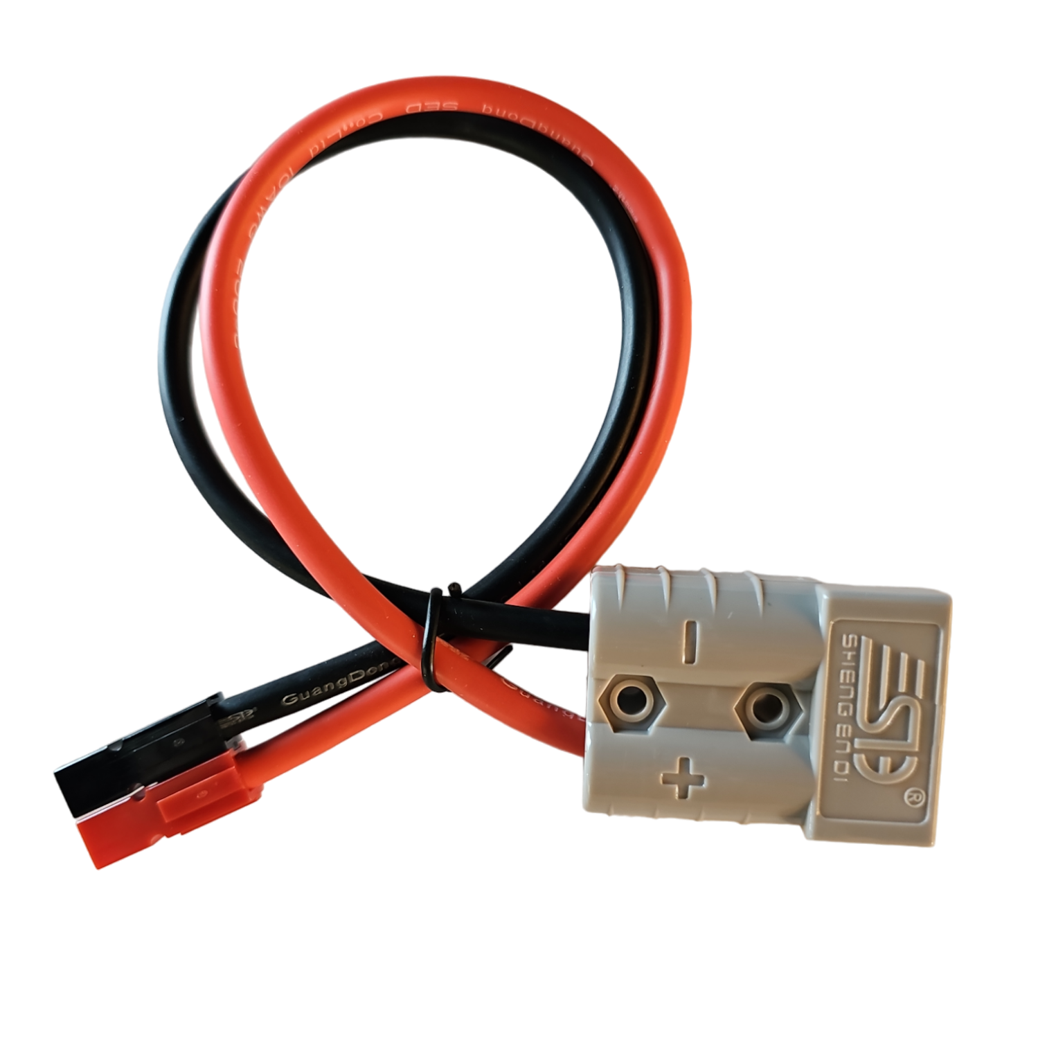 Grey Anderson on one end for connecting solar panels and equipment.