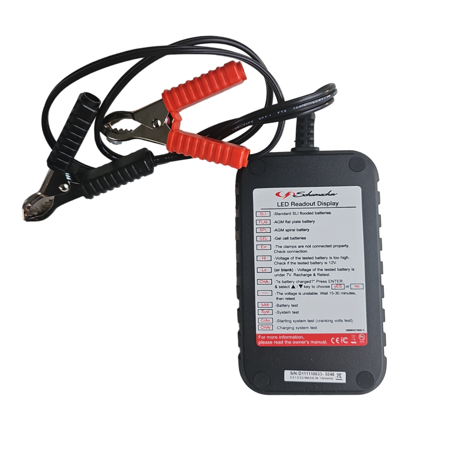Digital display shows voltage and CCA rating