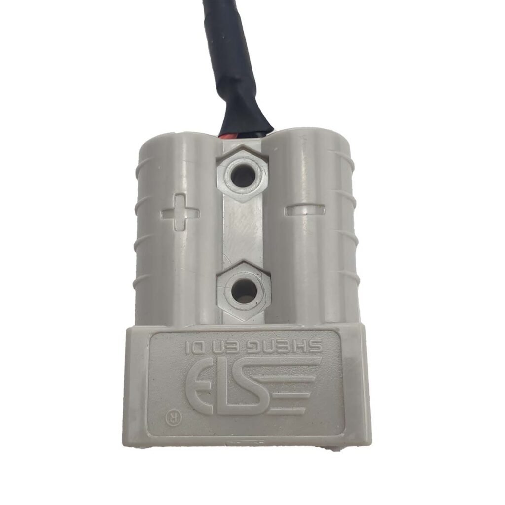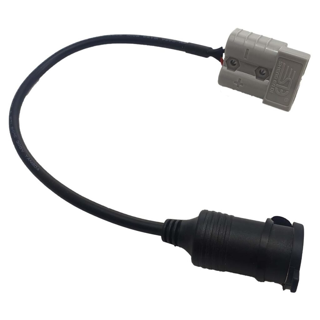 This connector is an Anderson Style 50 Amp connection to single female cig socket connection. A Cover is provided on the cig socket connector to ensure the connection is safe from dust and dirt and water when not is use.