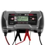 The Schumacher SPi Pro16 Digital Display Battery Charger comes with 2 cables, one with eyelets and one with 60A clamps. It also has a microprocessing CPU controller and a digital display.
